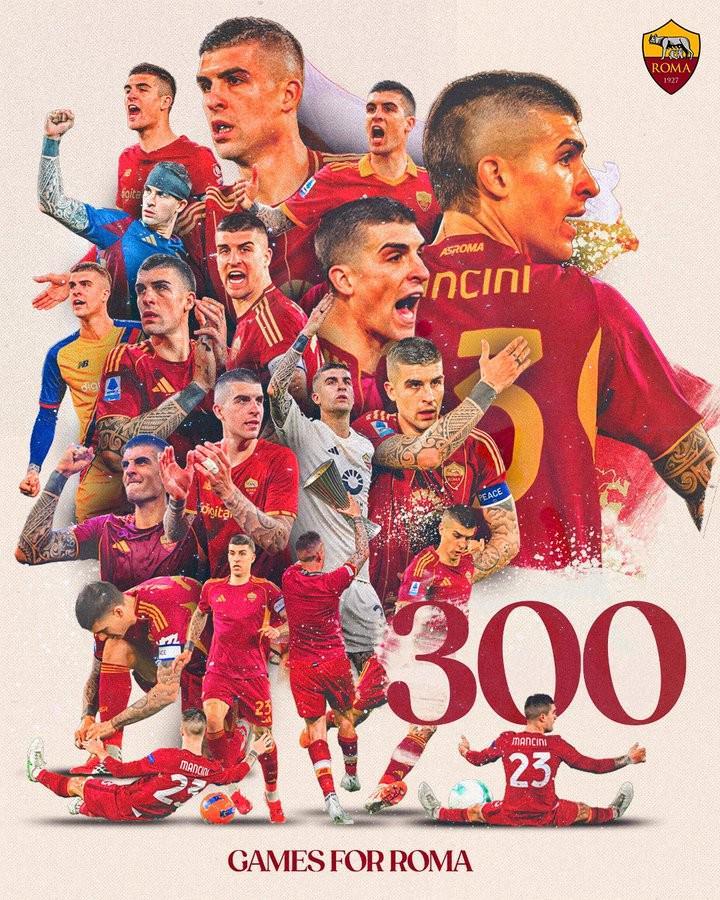根据罗马官方的统计,本场比赛是现年29岁的詹卢卡-曼奇尼自2019年夏天从亚特兰大转投罗马以来,代表球队出战的第300场正式比赛,期间他为罗马贡献了19粒进球和12次助攻,帮助球队赢得了一次欧协联(2021-22赛季)的冠军。