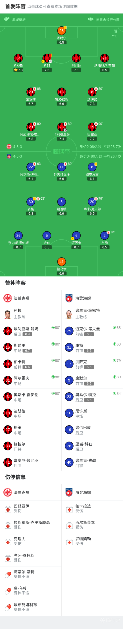 第67分钟,海登海姆快速反击,瑟洛德-康特破门因越位被吹无效