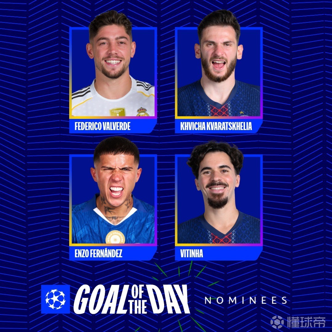 北京时间3月12日,在欧冠1/8决赛首回合第二比赛日的四场比赛结束后,欧冠官方列出了今日比赛最佳进球的四个候选者,巴尔韦德、恩佐-费尔南德斯、维蒂尼亚以及克瓦拉茨赫利亚的进球分别入选。